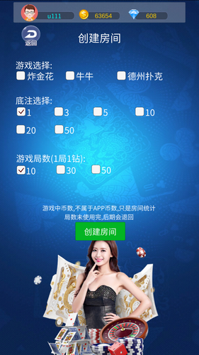 金花,牛牛,德州扑克,可以创建房间
